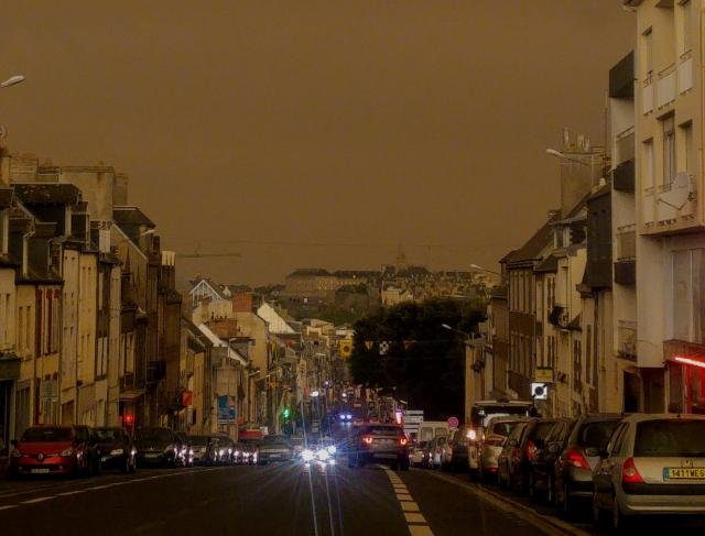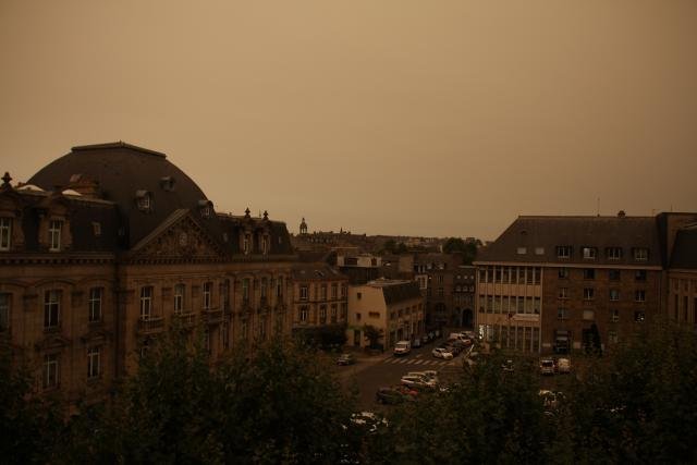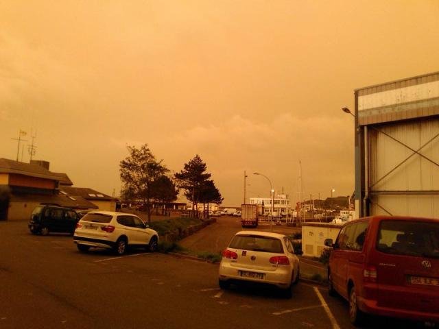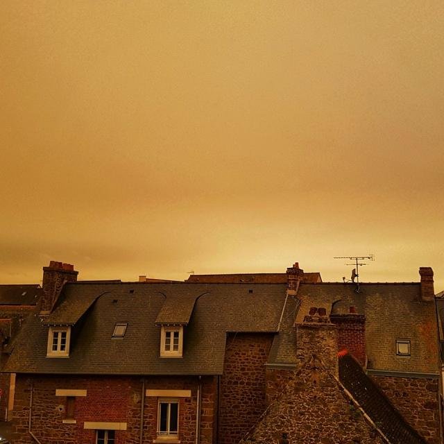 Amikor ott jártam, bár esős idő volt, nem volt sárga az ég. Azonban most, hogy az Ophelia (már nem hurrikán, csak trópusi vihar) berobbant Európa nyugati részére, Franciaországban is rengetegen fotózták a sárga színű égboltot. Az ég színe azért változott sárgára, mert afrikai homokot tartalmaz, illetve a Dél-Európában tomboló tűzvészek égéstermékeket is tartalmaznak. Ezért, akár halálos is lehet, főleg azok számára, akik asztmában szenvednek.